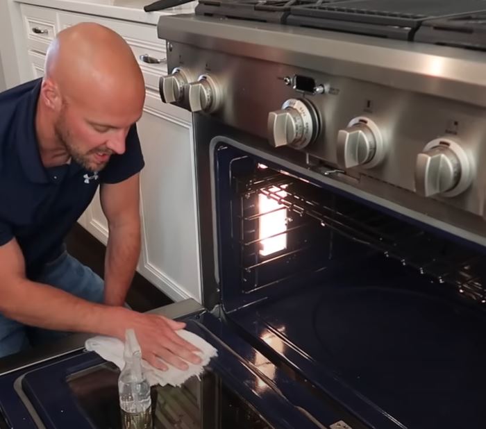 Next, wipe the oven down with a damp rag to make sure no residue is left behind.