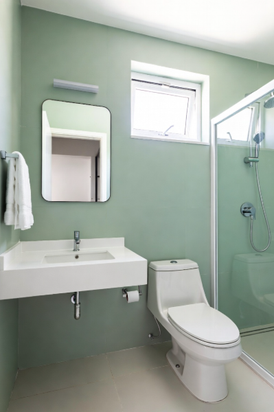 Choose light, airy colors to enhance the sense of space in a small bathroom. Soft hues help visually open up the room while promoting a clean, calm atmosphere, making the space feel more relaxing and enjoyable.